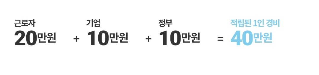 근로자가 20만원을 내고 기업이 10만원, 정부가 10만원 부담해서 총경비 40만원을 포인트로 적립