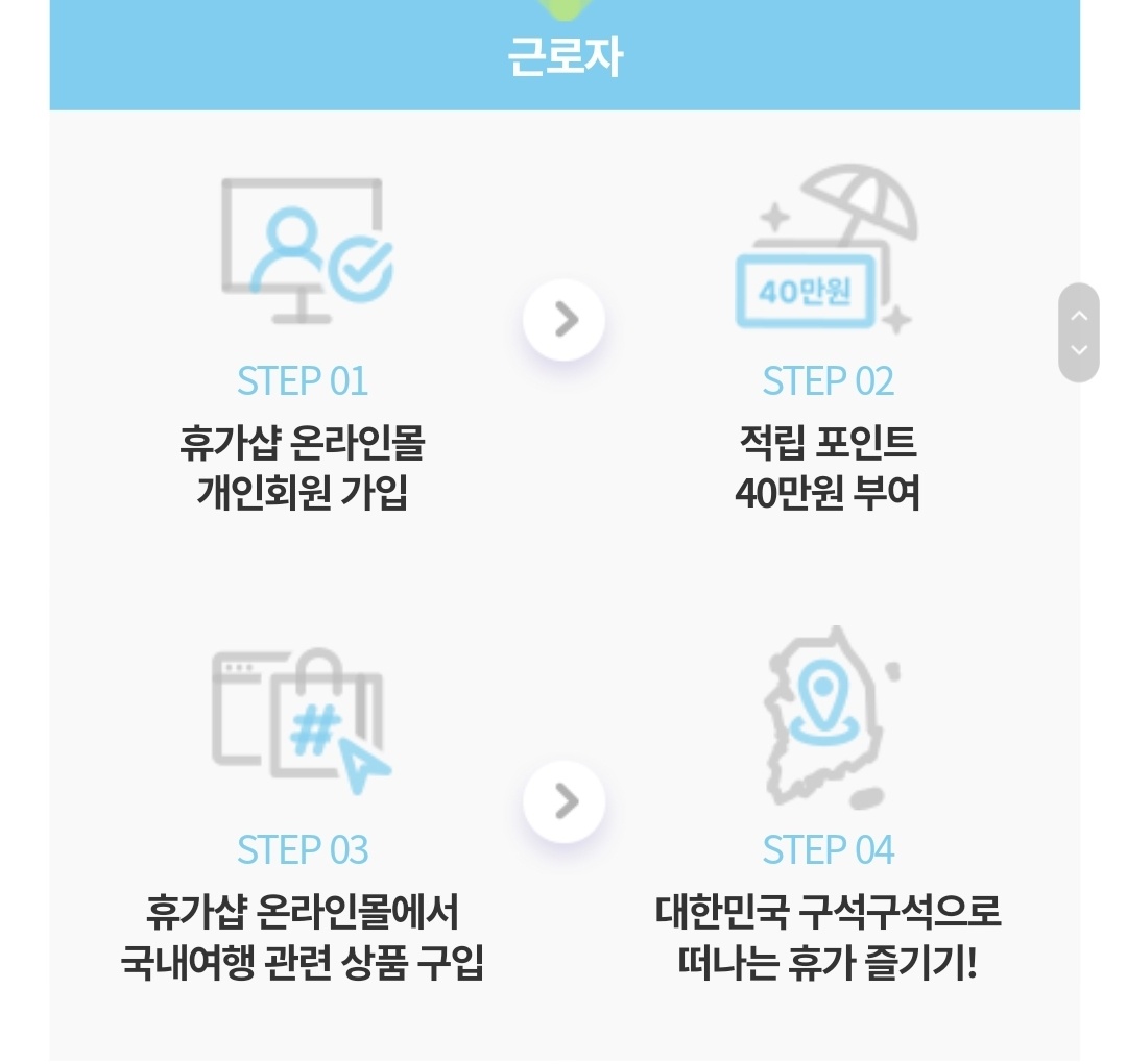 여행 계획이 있으시다면 지원금 수령하여 휴가샵에서 상품 구입후 여행하시면 될것같아요.